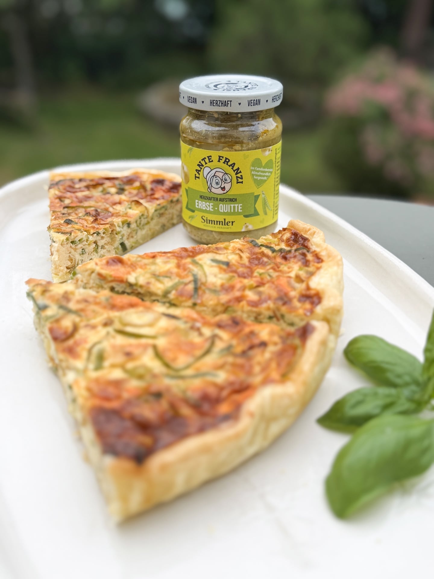 - Tante Franzi Erbse-Quitte mit veganer Sahne, Salz, Pfeffer und Muskat mischen.